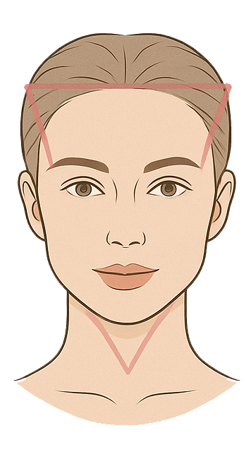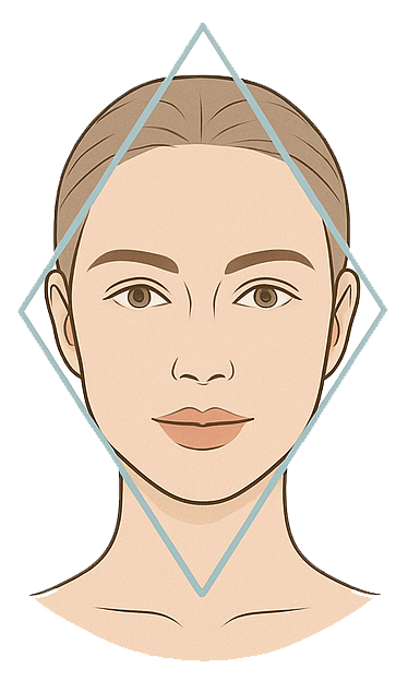 Der sogenannte Diamond Shape beschreibt eine Gesichtsform mit schmaler Stirn, ausgeprägten Wangenknochen und schmalem Kinn – ähnlich der Form eines Diamanten. Sie wird besonders mit Eleganz, Reife und definierter Ästhetik assoziiert.