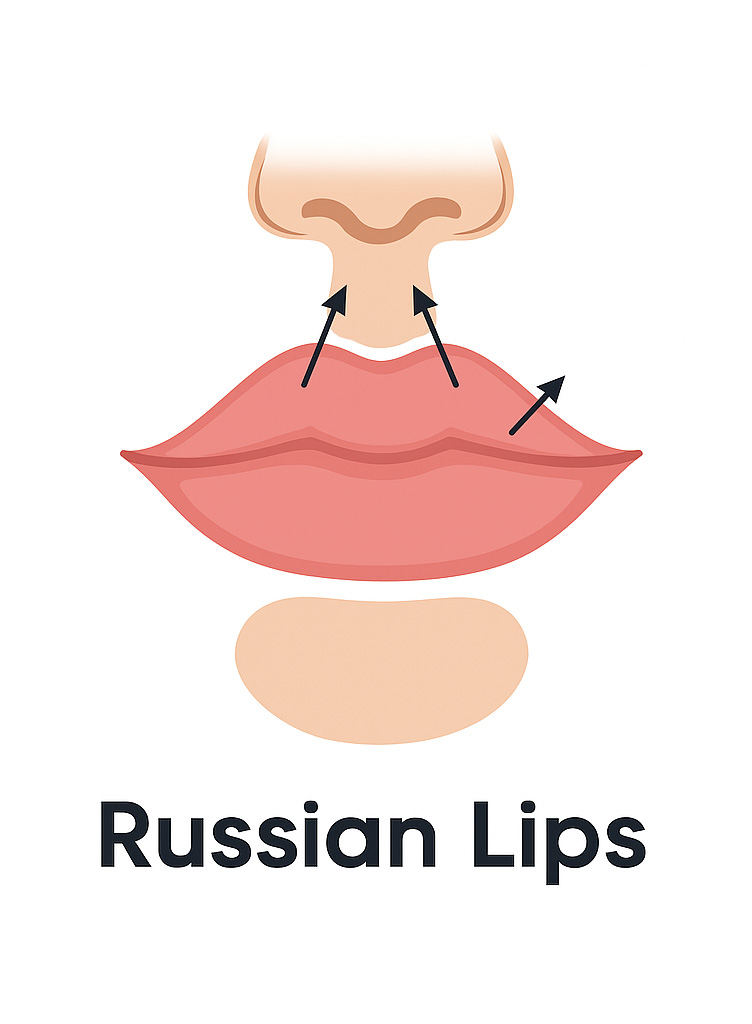 Die Russian Lips-Technik ermöglicht eine präzisere Formung mit Fokus auf den Amorbogen und einen sichtbareren Lifting-Effekt. Hierbei wird die Hyaluronsäure vertikal eingebracht, was die Lippenmitte optisch anhebt und für ein herzförmigeres Lippenbild sorgt.